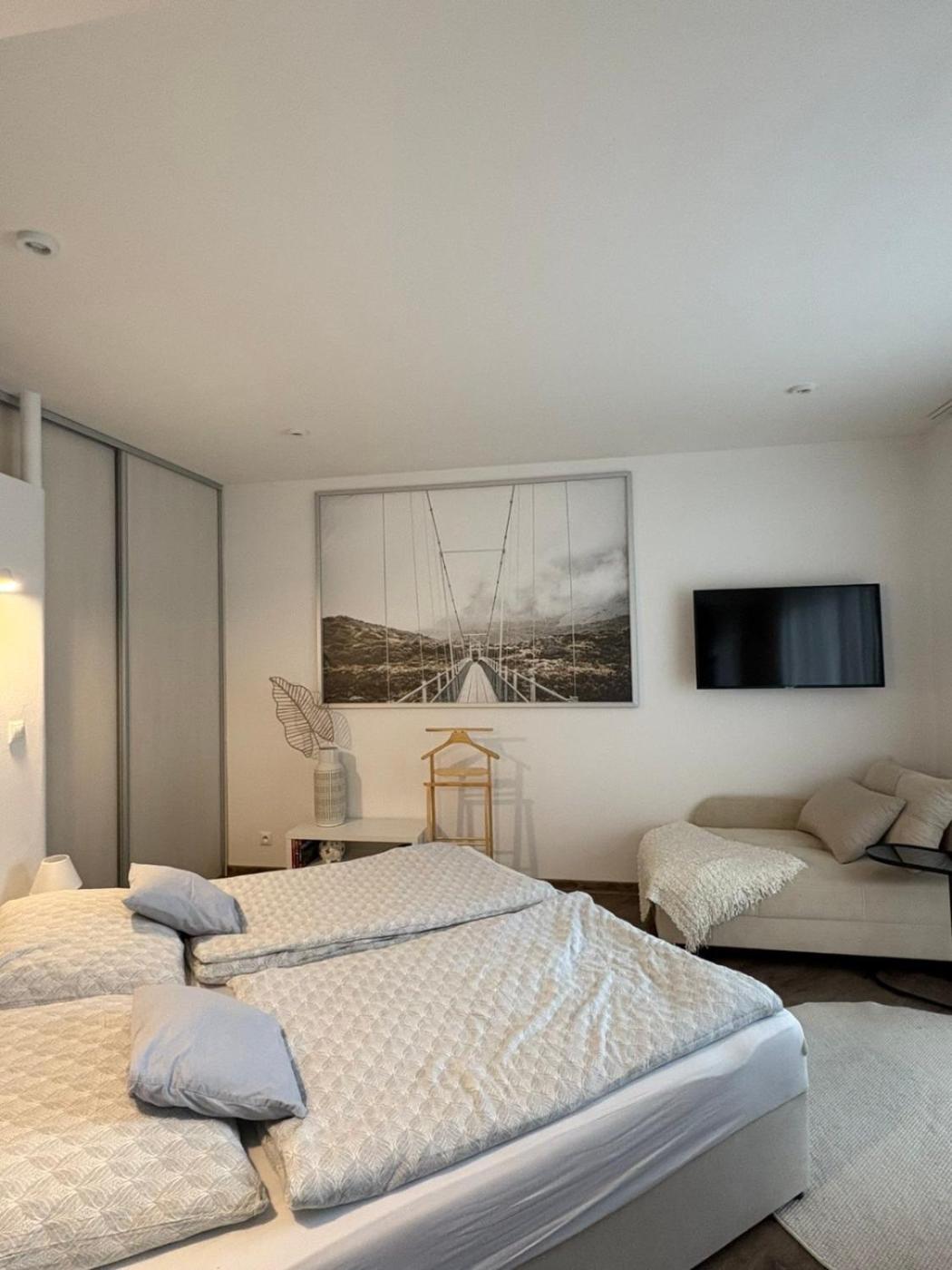 One-Bedroom Apartment. This apartment comprises 1 living room, 1 separate bedroom and 1 bathroom with a walk-in shower and a bidet. Meals can be prepared in the kitchen, which comes with a stovetop, a refrigerator, a dishwasher and kitchenware. This apartment features a washing machine, flat-screen TV with cable channels, garden views, as well as winechampagne for guests. The unit offers 2 beds.
