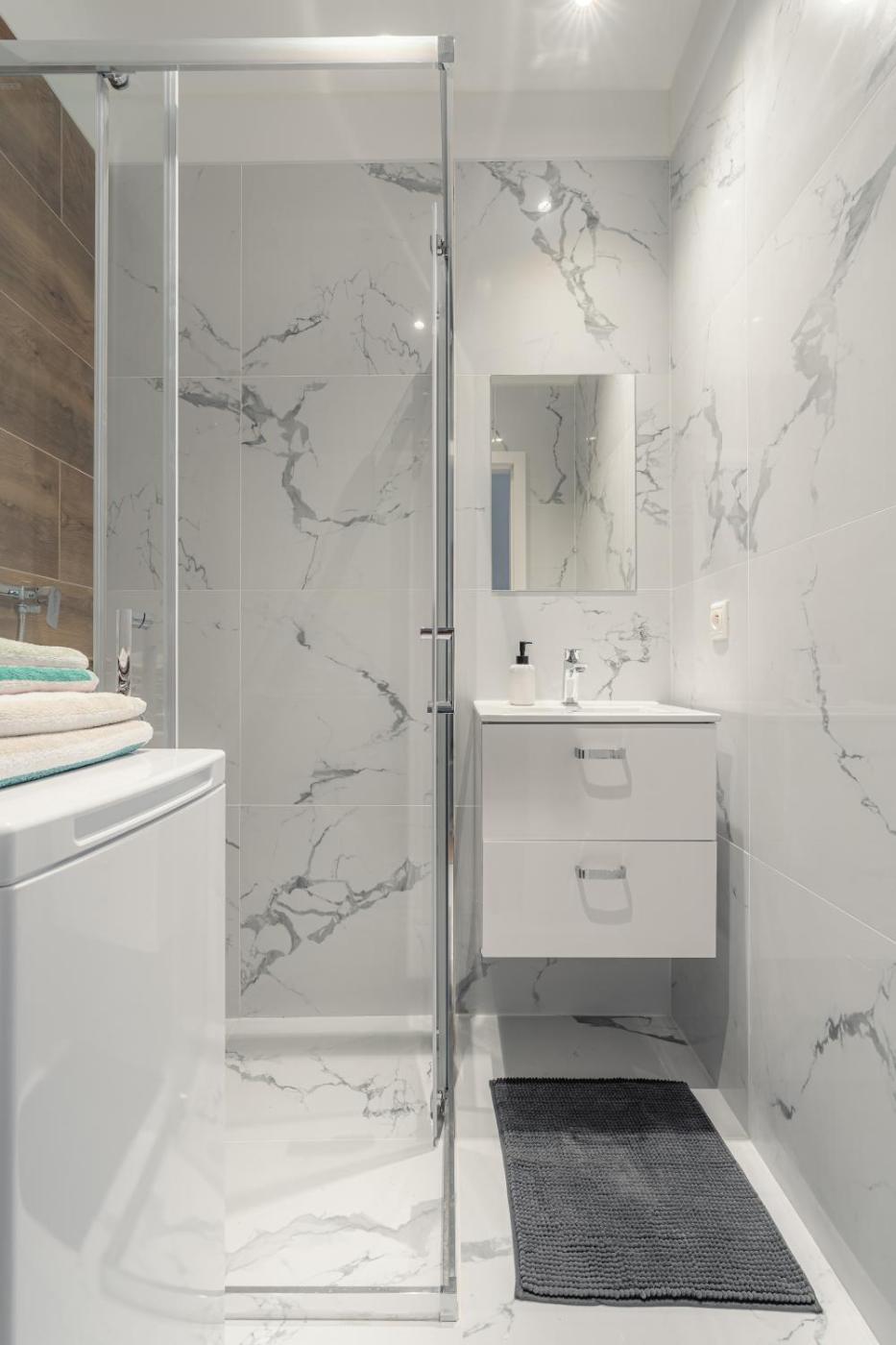 One-Bedroom Apartment. Boasting a private entrance, this apartment includes 1 living room, 1 separate bedroom and 1 bathroom with a walk-in shower and a hairdryer. In the well-fitted kitchen, guests will find a stovetop, a refrigerator, kitchenware and a microwave. The apartment has parquet floors, a seating area with a flat-screen TV with streaming services, a washing machine, a tea and coffee maker, as well as a dining area. The unit has 2 beds.