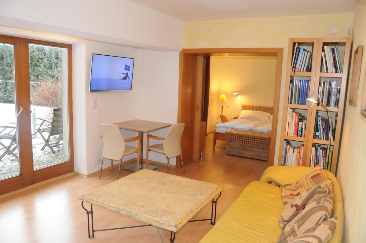 One-Bedroom Apartment. The pool with a view and sauna are the standout features of this apartment. Boasting a private entrance, this air-conditioned apartment comes with 1 living room, 1 separate bedroom and 1 bathroom with a bath and a shower. Guests can make meals in the kitchenette that features a stovetop, a refrigerator, kitchenware and a microwave. Featuring a terrace with garden views, this apartment also features a washing machine and a flat-screen TV with cable channels. The unit has 2 beds.
