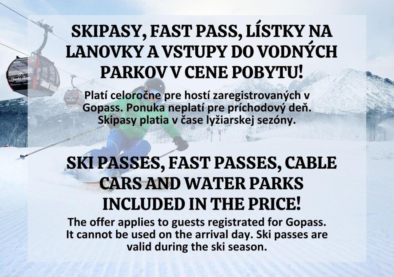 Guests staying at the Grandhotel**** Starý Smokovec have ski passes, cable car tickets in the resorts of Jasná Nízke Tatry, Vysoké Tatry (Štrbské Pleso, Starý Smokovec- Hrebienok and Tatranská Lomnca) and entrance to the water parks Tatralandia and Vodný park Bešeňová included in the price of their stay.