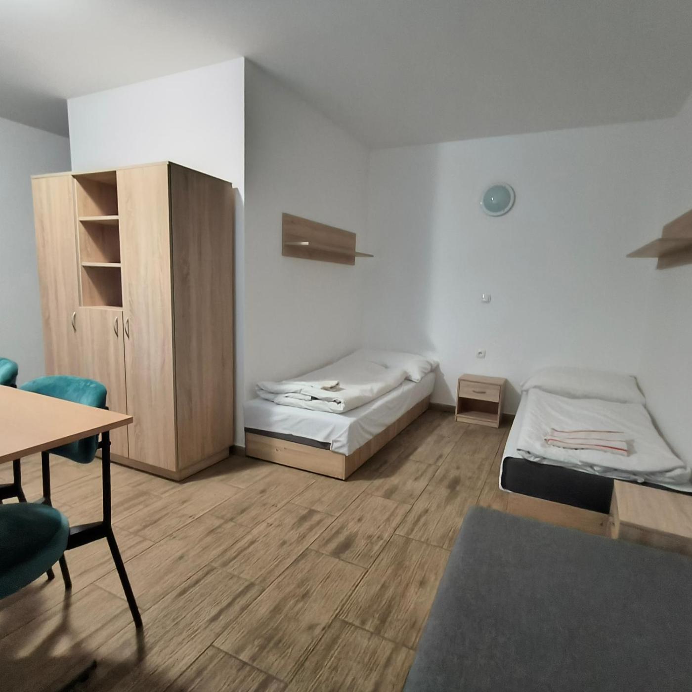 Classic Quadruple Room. The spacious quadruple room provides a tea and coffee maker and a wardrobe, as well as a private bathroom featuring a shower. A kitchenette equipped with a refrigerator, kitchenware and a microwave is available for cooking and storing food. The quadruple room features a tiled floor and heating. The unit offers 5 beds. ;
